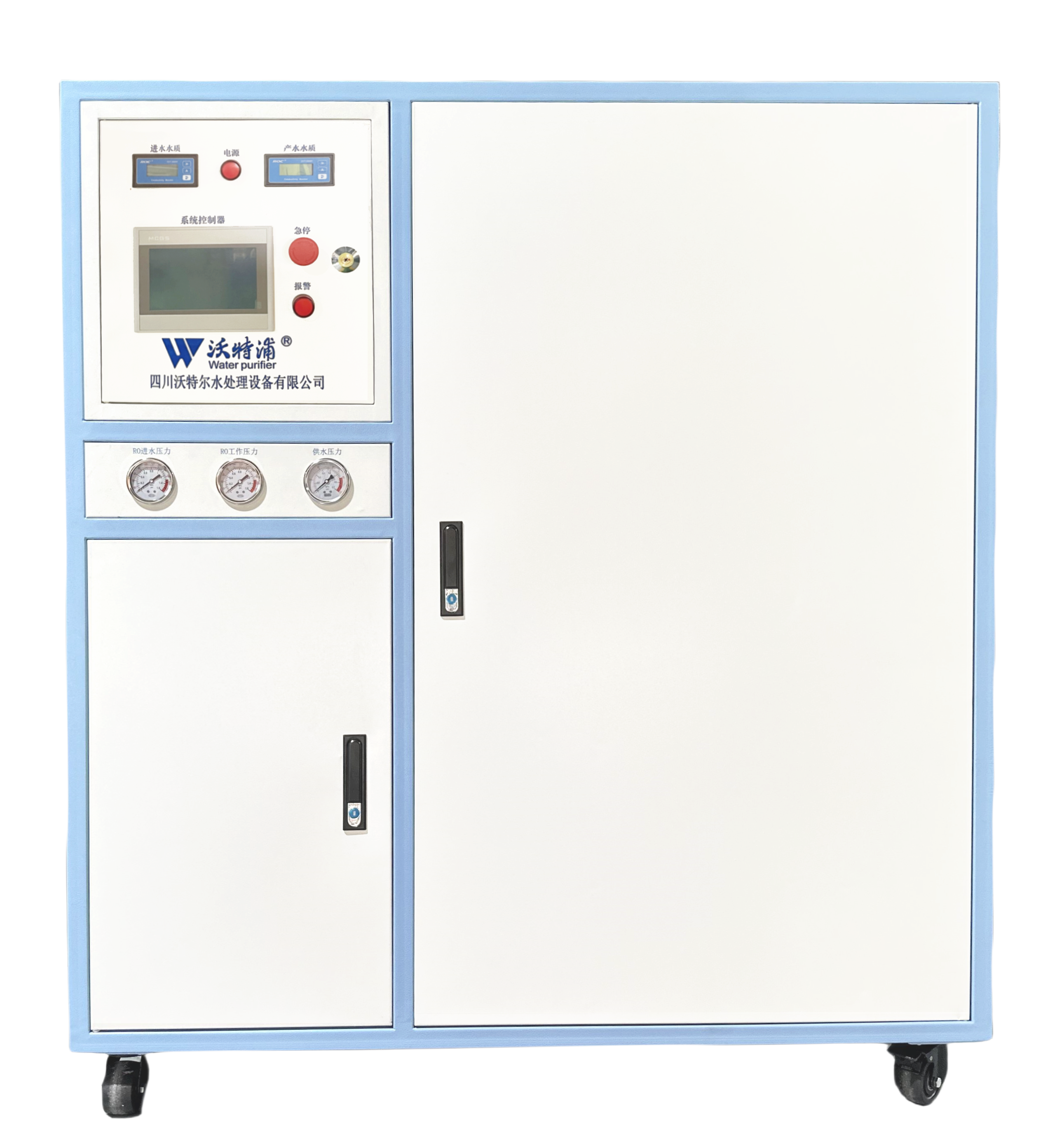 全觸摸彩屏操作系統(tǒng),采用知名PLC模塊自主編程控制,實時顯示水質(zhì)、系統(tǒng)狀態(tài)和報警信息;
